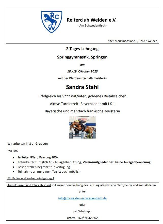 Sehr geehrte Mitglieder des Reiterclubs Weiden,
